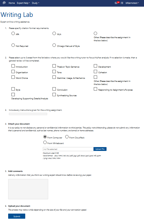 Submit a Paper to the Writing Lab: Click “Submit Paper” to upload your paper to our Writing Lab. Our writing lab tutors will analyze your paper and provide constructive feedback within 24 hours.