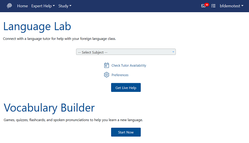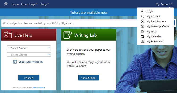 Account Features: Access your Brainfuse activity through easy-to-use account options.
