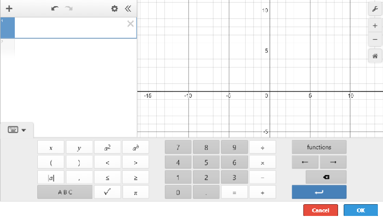 GRAPHING CALCULATOR: The Graphing Calculator allows you to create graphs and visualize functions. Click on the desired area of the Whiteboard where you want the graph to appear. When you are finished, select