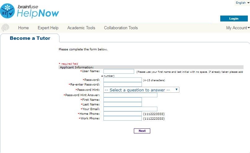 2. Once you select “Register as a Tutor,” you’ll be able to create your tutor account by entering the requested information. When the required information is entered, select “Next.”