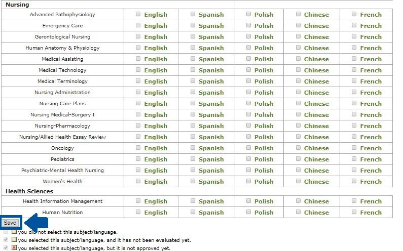 4. When you have selected all the subjects you are able to tutor, select “Save” at the bottom of the page.