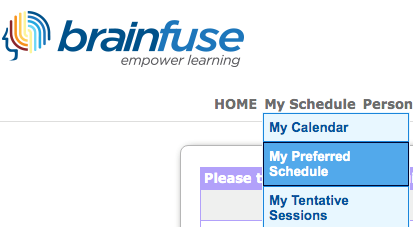 2. From the Brainfuse homepage, hover over “My Schedule” and select “My Preferred Schedule”.