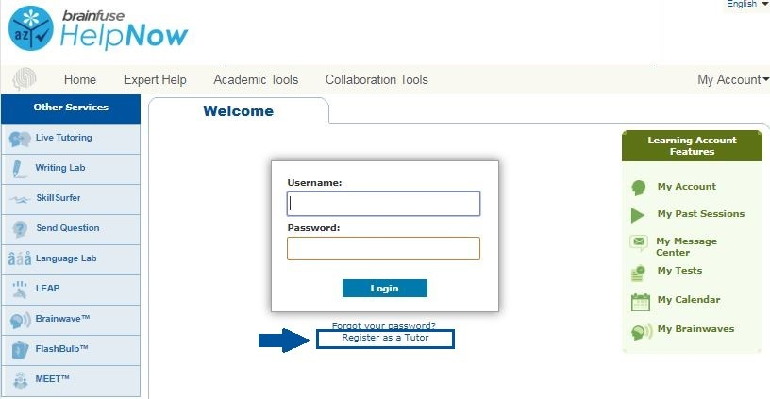 1. To set your preferred schedule, log in to Brainfuse using your tutor account credentials (username and password created when Self-Registering above).