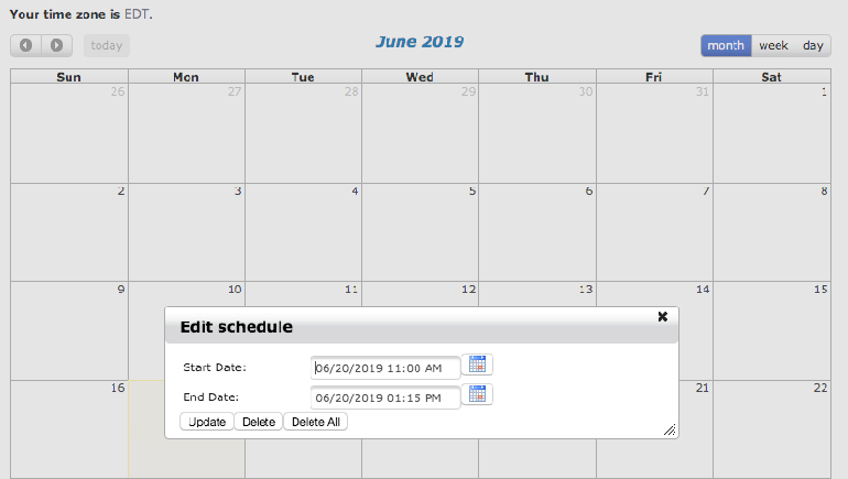 2. Select the availability you wish you edit. From the “Edit Schedule” pop-up, you can: