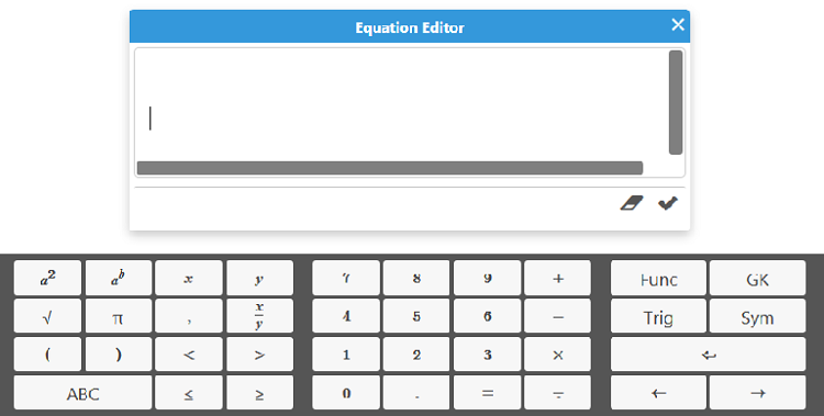 TYPE EQUATIONS WITH THE EQUATION EDITOR: The equation editor allows you to create mathematical equations, functions, and symbols in the available box. Click on the desired area of the Whiteboard where you want the equation to appear. When you are finished, click