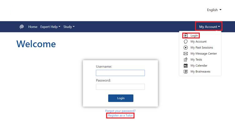 1. To self-register, follow the link provided for your self-registration and select “Register as a Tutor” found under the log in option.