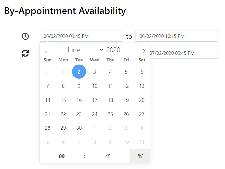 3. From the entry page, select the start date/time and the end date/time for your tutoring availability.