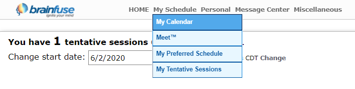 1. To change your preferred schedule, select “My Calendar” from the “My Schedule” option in the top menu bar from your tutor account.
