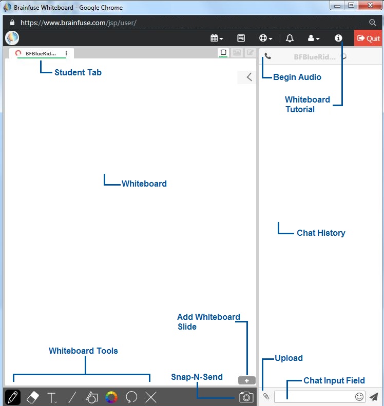 Brainfuse Whiteboard: Review the Brainfuse Whiteboard and tutor only features for use during a tutoring session.