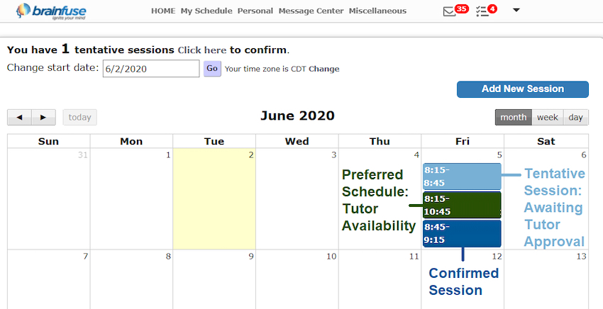 1. To schedule a session with a specific student, select “Add New Session” from your tutor home page.