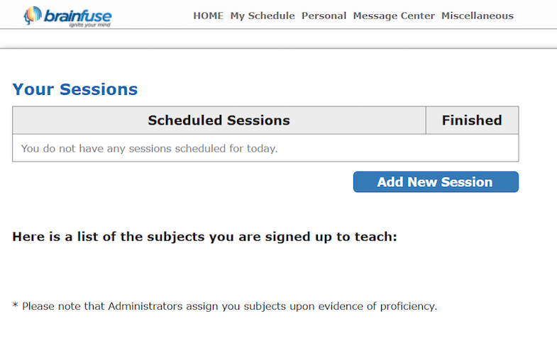 6. Prior to your scheduled tutoring shift with a student, log in to your Brainfuse tutor account. Your tutoring sessions scheduled for that day will appear at the top of homepage for easy access.