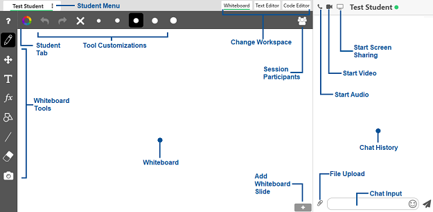 UNIQUE WORKSPACES: Use the following options to change the workspace during a live tutoring session.