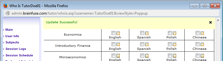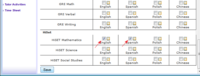 5. Click on the the subjects and/or languages that you want to add for the tutor. Be aware that only subjects approved for the account will be available.